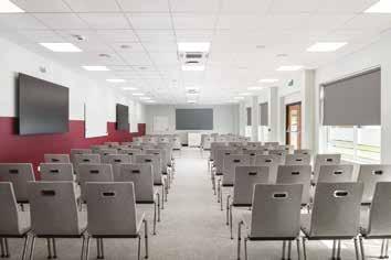 The venue also offers two dedicated lecture theatres, each designed to support different styles of delivery and engagement. The larger 228-seat theatre is configured in a Turn & Learn format, encouraging collaboration and interaction throughout sessions. Complete with a 4K resolution screen, it delivers highquality visual impact for conferences and keynote speakers. Complementing this, the 88-seat Harvard-style theatre creates a more intimate environment, encouraging discussion and active participation between hosts and delegates.