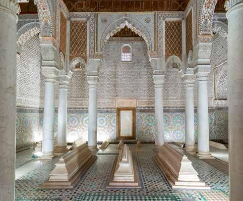 hundreds of years of history behind them. The tombs are located in one of the oldest mosques in Morocco, the Kasbah Mosque, and contain several chambers that are beautifully decorated with intricate stucco carvings and colourful tiles.