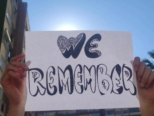 Finalmente, un grupo de alumnos con sus instrumentos musicales tocan varias melodías, y un minuto de silencio cierra el acto, conmueve el brillo en sus ojos mientras levantan sus carteles escritos con la frase #We remember”.