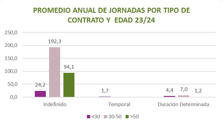 Número total y distribución de modalidades de contrato de trabajo, promedio anual de contratos indefinidos, de contratos temporales y de contratos a tiempo parcial por sexo, edad y clasificación profesional