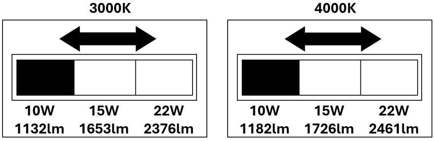 - - 7W (765lm) 10W (1132lm) 19W (2316lm) ON - 12W (1293lm) 15W (1653lm) 24W (2850lm) ON ON 17W (1706lm) 22W (2376lm) 29W (3369lm) 4000K 1 2