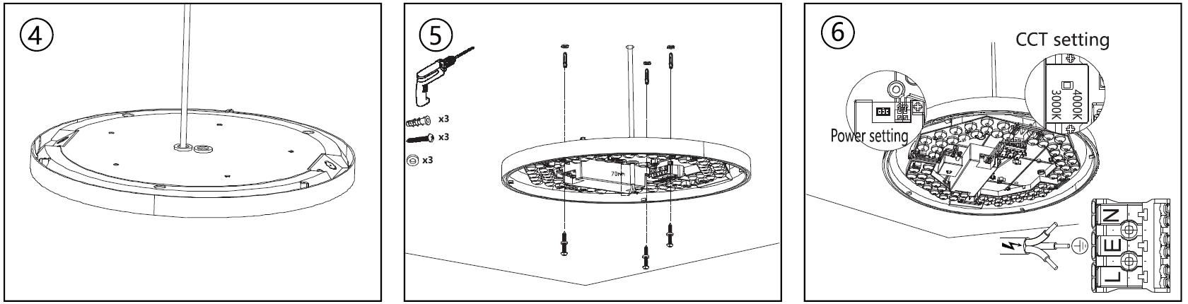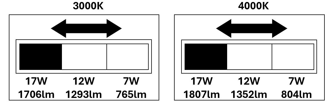 - - 10W (1132lm) 19W (2316lm) ON - 15W (1653lm) 24W (2850lm) ON ON 22W (2376lm) 29W (3369lm)