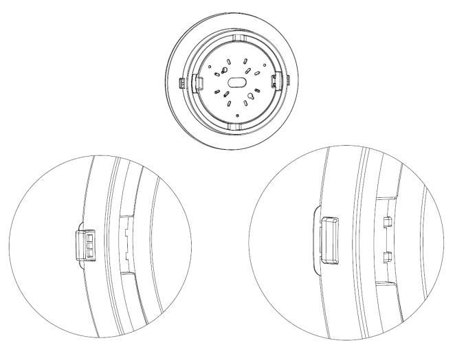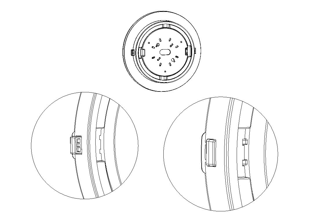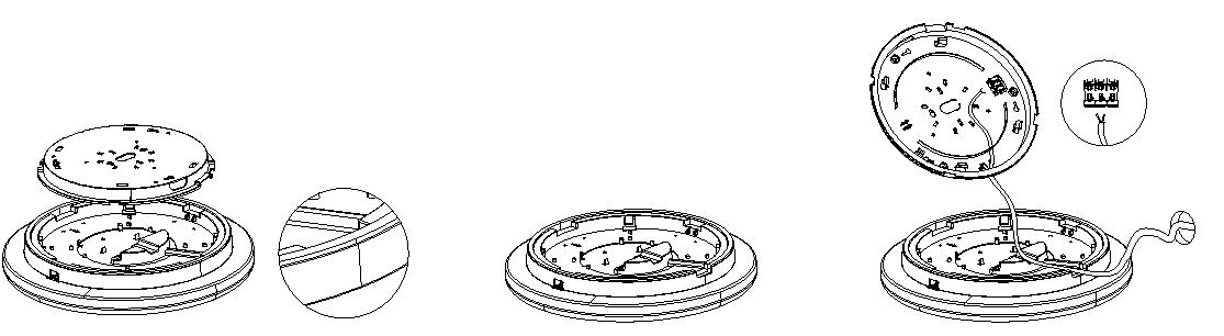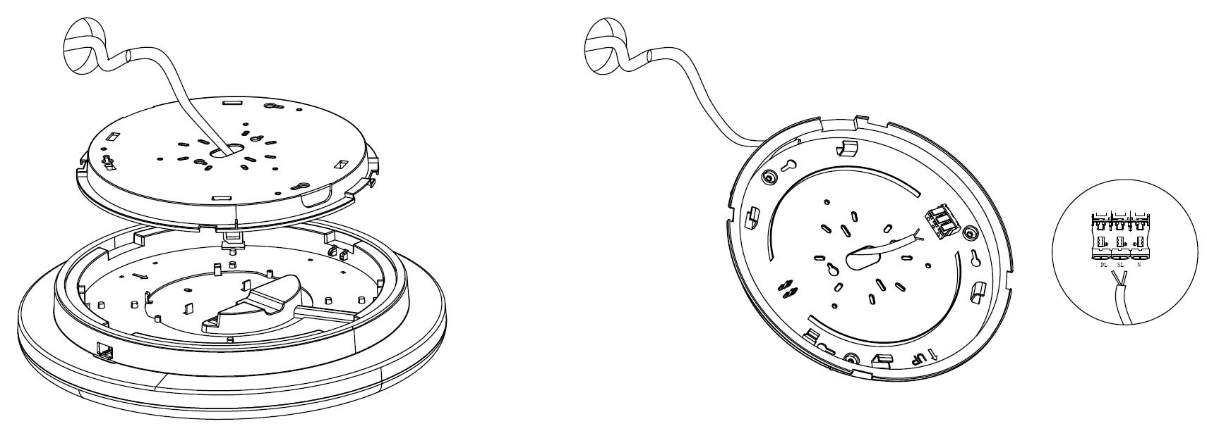 4. Place the luminaire housing onto the backplate and lock it in place. Note that the 450mm luminaire also requires twisting to double-lock.