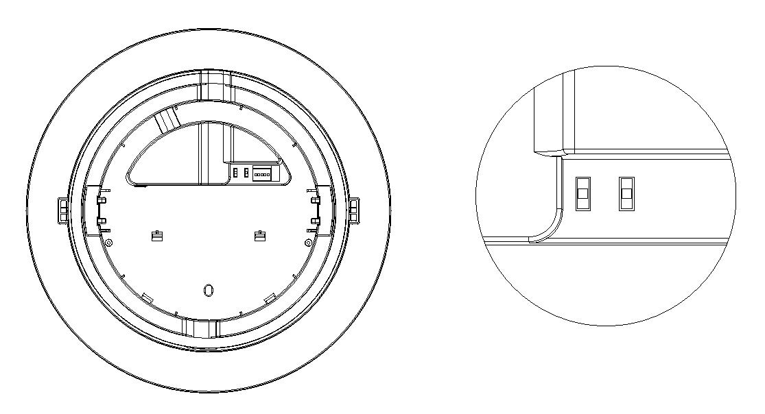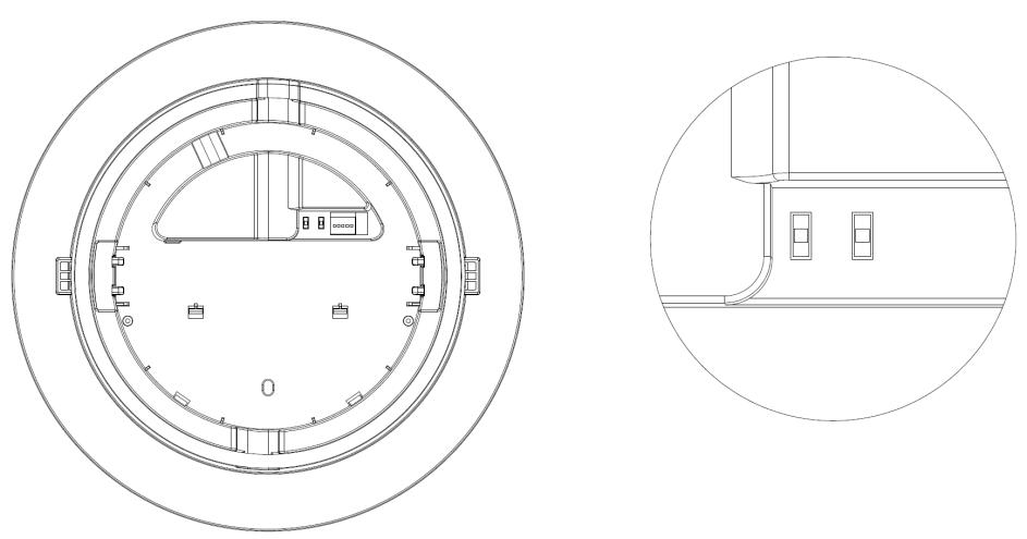 2. På undersidan av armaturen väljer du önskade effekt och CCT-inställningar med hjälp av dip-switchar