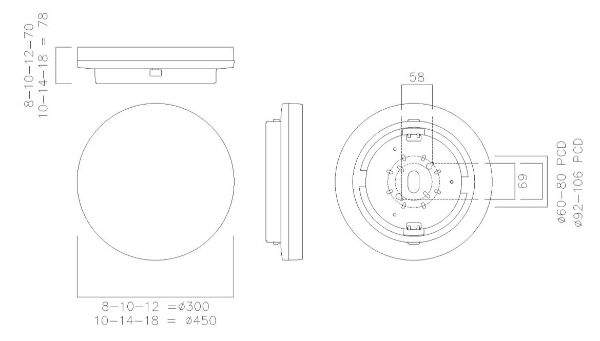 Power Dip-switch 300mm - 8/10/12W 450mm - 10/14/18W