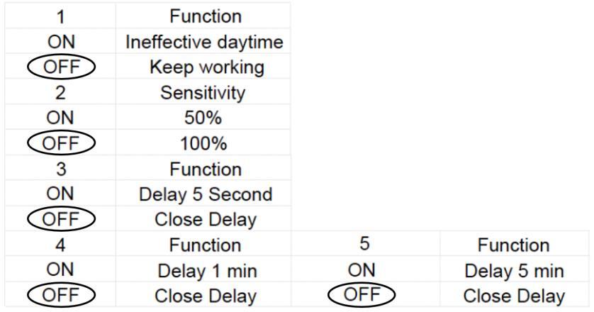 Känslighet: 100% Eftersläckningstid:30s Dagsljussensor: Av
