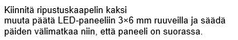 • Paneelin taustaa ja virtalähdettä ei saa peittää millään tavalla, sillä se voi vaikuttaa suorituskykyyn ja käyttöikään.