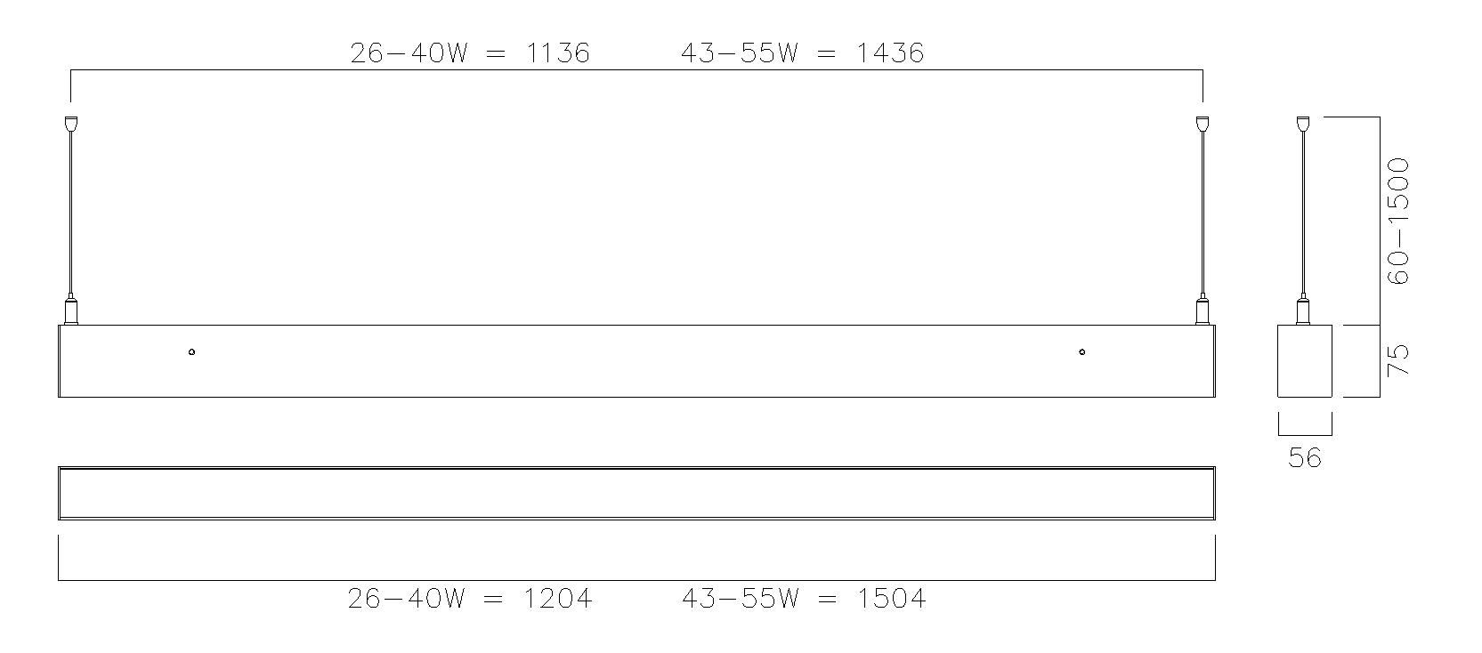 1. This will require the wire suspension kit, which is supplied as standard with bi-directional versions - Suffix… /BD/.. and optional extra on the downlight versions- Suffix…/DO/…, so must be ordered separately (Order code: NDL/WSK).