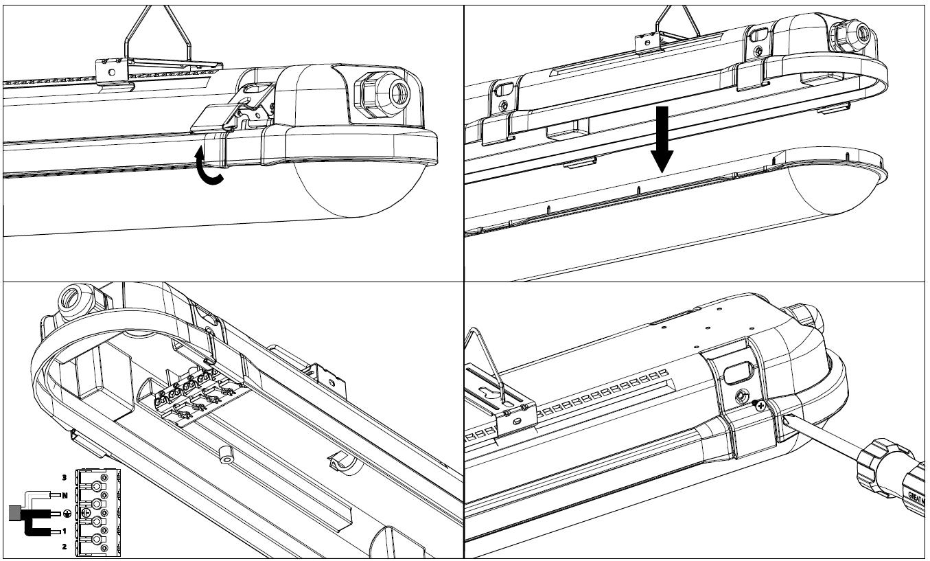 Note! Luminaires fitted with electronic drivers are exempt from insulation resistance tests, as this may cause irreparable damage & would void warranty