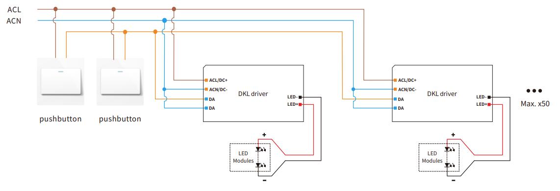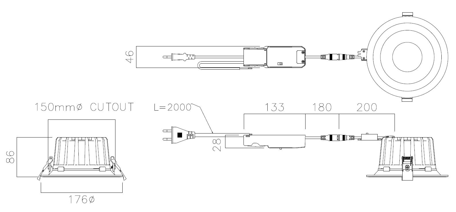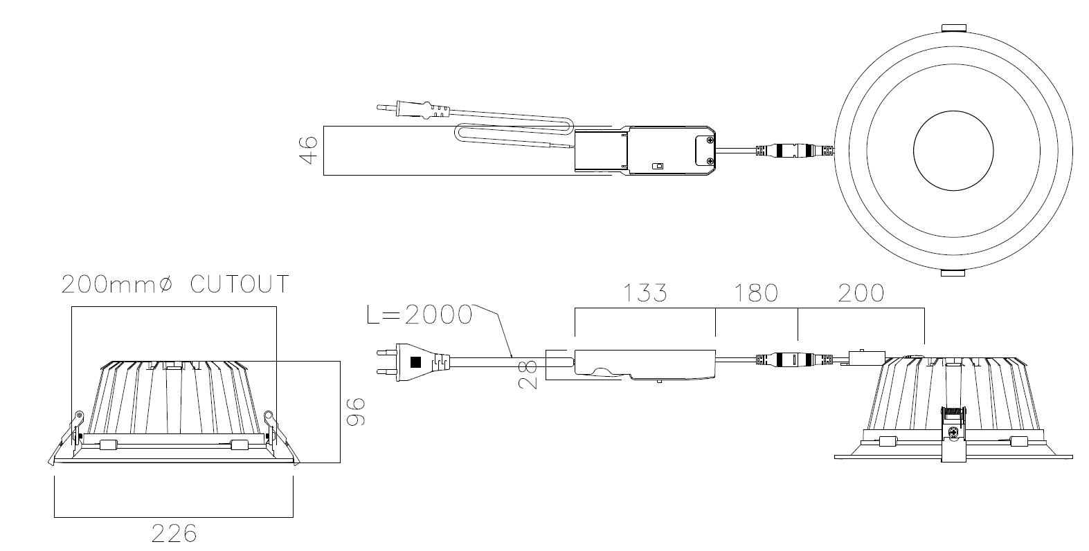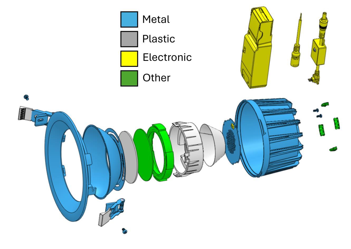 The luminaire contains a light source with an energy efficiency class D for standard luminaires and energy efficiency class E for DD luminaires, in accordance with Regulation (EU) 2019/2015