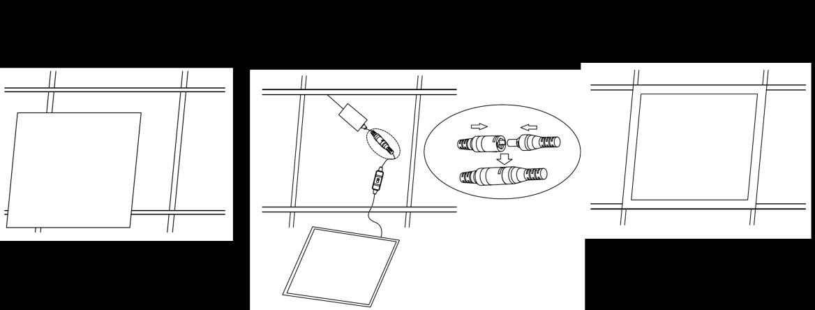 1. Feed the mains supply cable through the chosen opening in the suspended ceiling grid.