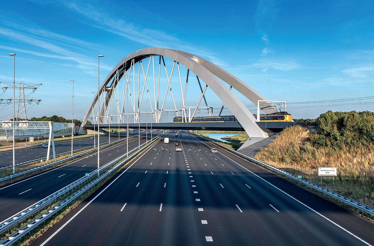> Innovaties op product-, concept- en bouwniveau. De toepassing van S460 is voor de hoofdliggers en bogen noodzakelijk. De keuze voor S355 in combinatie met de vereiste slankheid van de brug zou leiden tot ontoelaatbare plaatdiktes en een hoog transportgewicht. Volgens de huidige ontwerprichtlijnen van ProRail is het echter niet toegestaan om staalsoorten hoger dan S355 toe te passen. In overleg met ProRail is besloten om voor een betere lasbaarheid thermo-mechanisch gewalst staal S460/ML toe te passen en om tegelijkertijd een aantal strengere eisen te stellen aan de chemische samenstelling en mechanische eigenschappen van het materiaal.