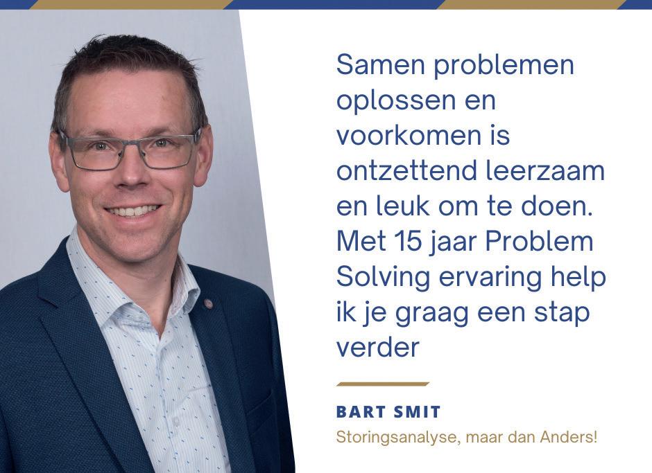 Vraag: Wat maakte de RCA hier zo effectief? “Samen de feiten vaststellen, visualiseren en doorvragen. Het lijkt simpel, maar zonder die structuur was men waarschijnlijk blijven gissen en proberen. De RCA gaf richting en hielp doorbraken te forceren”. Bart benadrukt dat het leren toepassen van een RCA centraal staat in de training Storingsanalyse, maar dan Anders!
