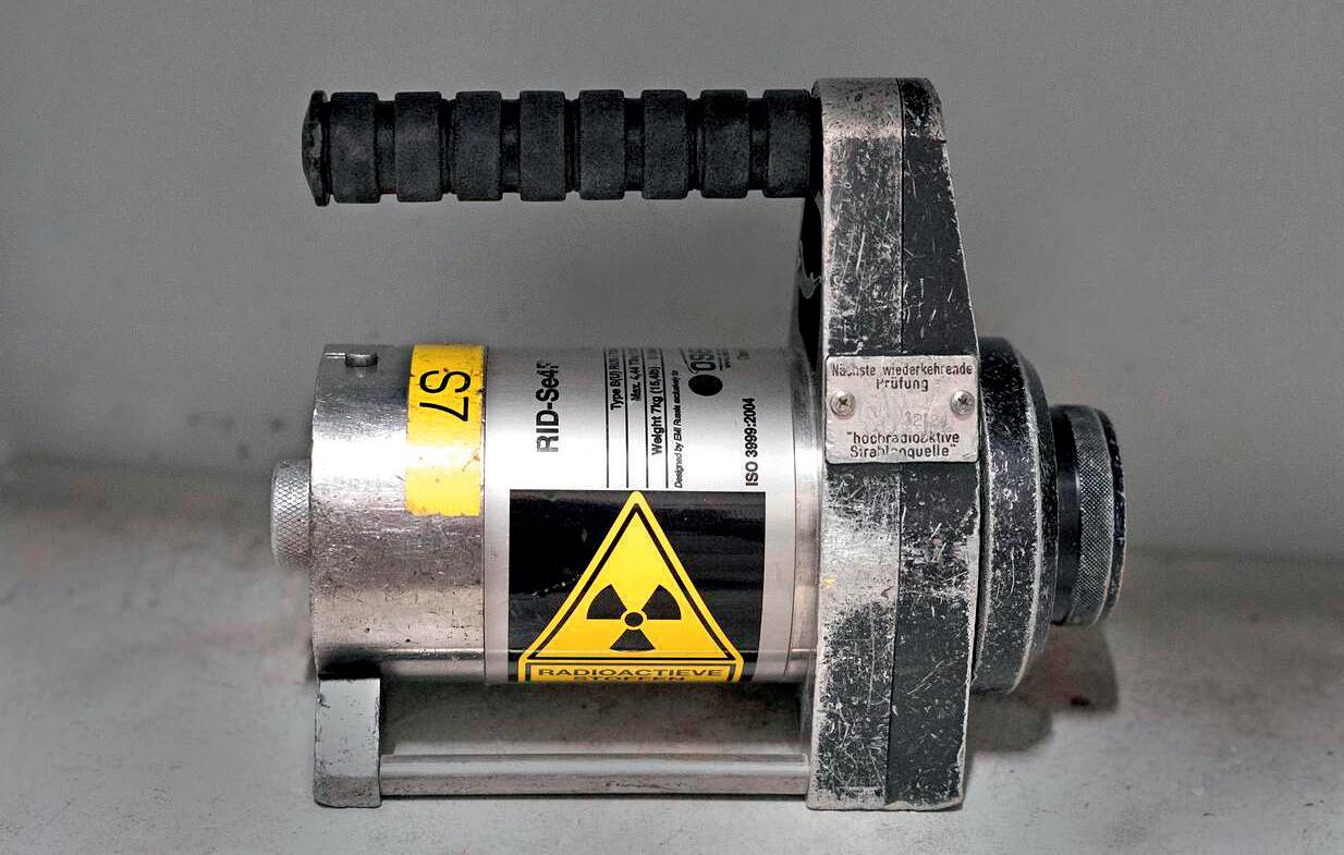 > Industriële radiografie. Voor het uitvoeren van industriële radiografie met gammastraling, hebben bedrijven een grote keuze aan stralingsbronnen, apparatuur en hulpmiddelen zoals elektriciteitskabels en een bedieningspaneel. De hoogactieve bronnen worden altijd opgeslagen in speciale bergplaatsen. Veilige en beveiligde opslag van dit soort radioactieve bronnen is belangrijk om misbruik, sabotage of diefstal tegen te gaan. Ook deskundig gebruik is nodig voor de veiligheid van mens en milieu.