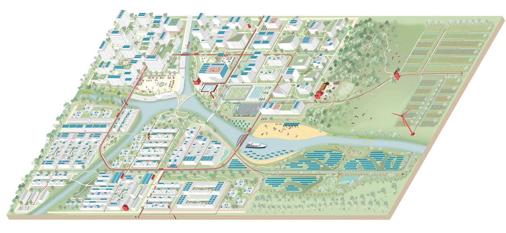 > Spaghetti ontwarren. Innoveren kan over iets technisch gaan, maar ook organisatorisch of systemisch zijn, zegt Sjerps-Koomen. “Het gaat ook over geld, over rollen en over sociale dingen”. Samen met alle stakeholders naar nieuwe oplossingen zoeken, is als een bord spaghetti ontwarren, vervolgt ze. “In de ruimtelijke ordening hangt alles met elkaar samen. Als je aan één ding trekt, beweegt de rest mee. Het is heel complex en dat feit moet je niet willen ontkennen. Je kunt snijden in die spaghetti, maar dat is niet de juiste manier. Soms zit er een balletje in die slierten, daar kan dan een afgebakend team mee aan de slag. De samenhang en onzekerheid in het geheel pakken we ook aan. We werken nu aan een woonwijk die zijn eigen energievraag- en aanbod in balans houdt. Dat is een ontwerpvraag, dus werken we samen met ontwerpers. Maar het is ook een organisatorische vraag, waarbij we tegen weten regelgeving aanlopen. Die partijen betrekken we ook. En, als we samen iets nieuws bedenken, van wie is het dan? Van landelijk netwerkbeheerder Tennet, van de markt, bewoners, van ons? Wij ontwerpen die wijk niet, dus werken we samen met alle stakeholders aan een energiesysteem vóór de toekomst”.
