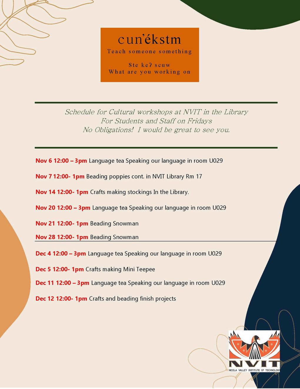 Check out the upcoming events and workshops happening at both NVIT’s Merritt and Vancouver campuses in the Events & Workshops section
