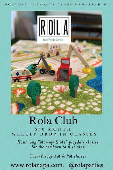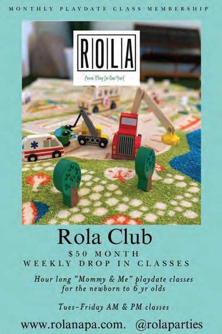 The Easter Bunny will be hopping by on Saturday, April 1st @ 11-2pm visit belaireplaza.com for details Rola Club $50 MONTH • WEEKLY DROP IN CLASSES Hour long “Mommy & Me” playdate classes for the newborn to 6 yr olds Tues- Friday AM & PM classes MONTHLY PLAYDATE CLASS MEMBERSHIP www.rolanapa.com @rolaparties