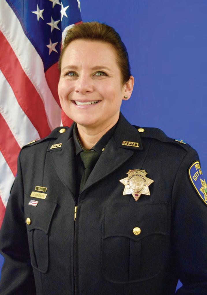 “Integrity is key in being a police chief or for any law enforcement position,” says Napa’s Police Chief Jennifer Gonzales. “We all must project a standard above minimum. The public expects and should receive superior service. I ensure that our officers know what