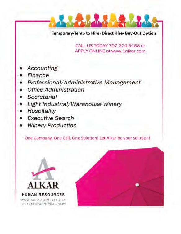 36 napavalleymarketplace.com March 2023 Open your next sale or refinance with us! Angie Pinckney Escrow Ops Manager angiep@ortc.com Mark Lyons Escrow Officer mlyons@ortc.com Nora Simmons Escrow Officer nsimmons@ortc.com Aimee Greco Escrow Officer agreco@ortc.com Tiffany Diede Napa County Manager tdiede@ortc.com VISIT OUR WEBSITE! We are lucky to serve you! 01/2023 | ©2023 Old Republic Title 2140 Jefferson St., Suite A, Napa, CA 94559 2390 California Blvd., Napa, CA 94559 T: 707.265.9838 SUBSTITUTE TEACHERS & AIDES NOW HIRING! Visit napacoe.org/jobs today to learn more. 707.253.6818 BEFORE & AFTERSCHOOL CLASSROOM LEADERS FIND JOY WORKING WITH STUDENTS Elementary & Middle Grades Preschool – Grade 12