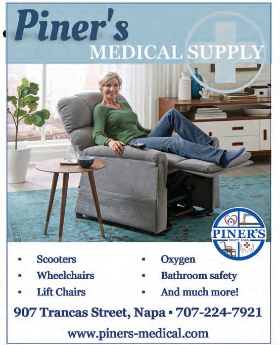 February 2023 napavalleymarketplace.com 3 • Scooters • Wheelchairs • Lift Chair • Oxygen • Bathroom Safety • And much more! Best Medical Supply Store 2022 Best of Napa Award 907 Trancas Street, Napa • 707-224-7921 www.piners-medical.com 3630 Bel Aire Plaza, Napa 707-226-9954 • Larkshoes.com Monday-Saturday: 10am to 6pm • Sunday: 11am to 5pm Where Style Meets Comfort! $10 OFF ONE PAIR With This Coupon Only. Expires February 28, 2023.*excludes kids shoes and boots, any style under $70, and all UGG products. LARK SHOES $25 OFF TWO PAIRS With This Coupon Only. Expires February 28, 2023.*excludes kids shoes and boots, any style under $70, and all UGG products. LARK SHOES OR Valentine’s Gift Idea