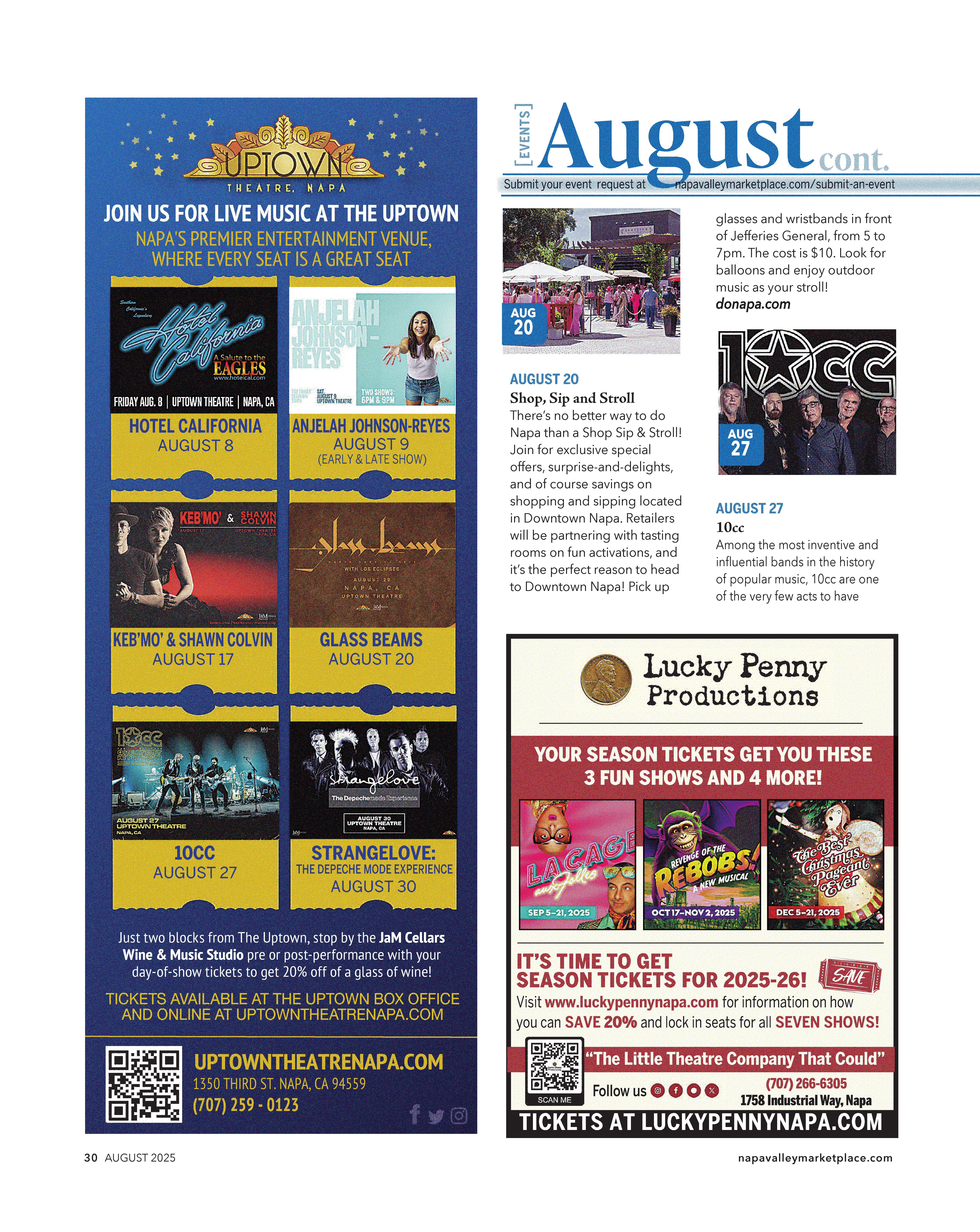 August 20th locations: on Main St. between Clinton & 5th Sts. Including, the Napa Riverfront and Clinton St. between Brown and Main Sts.