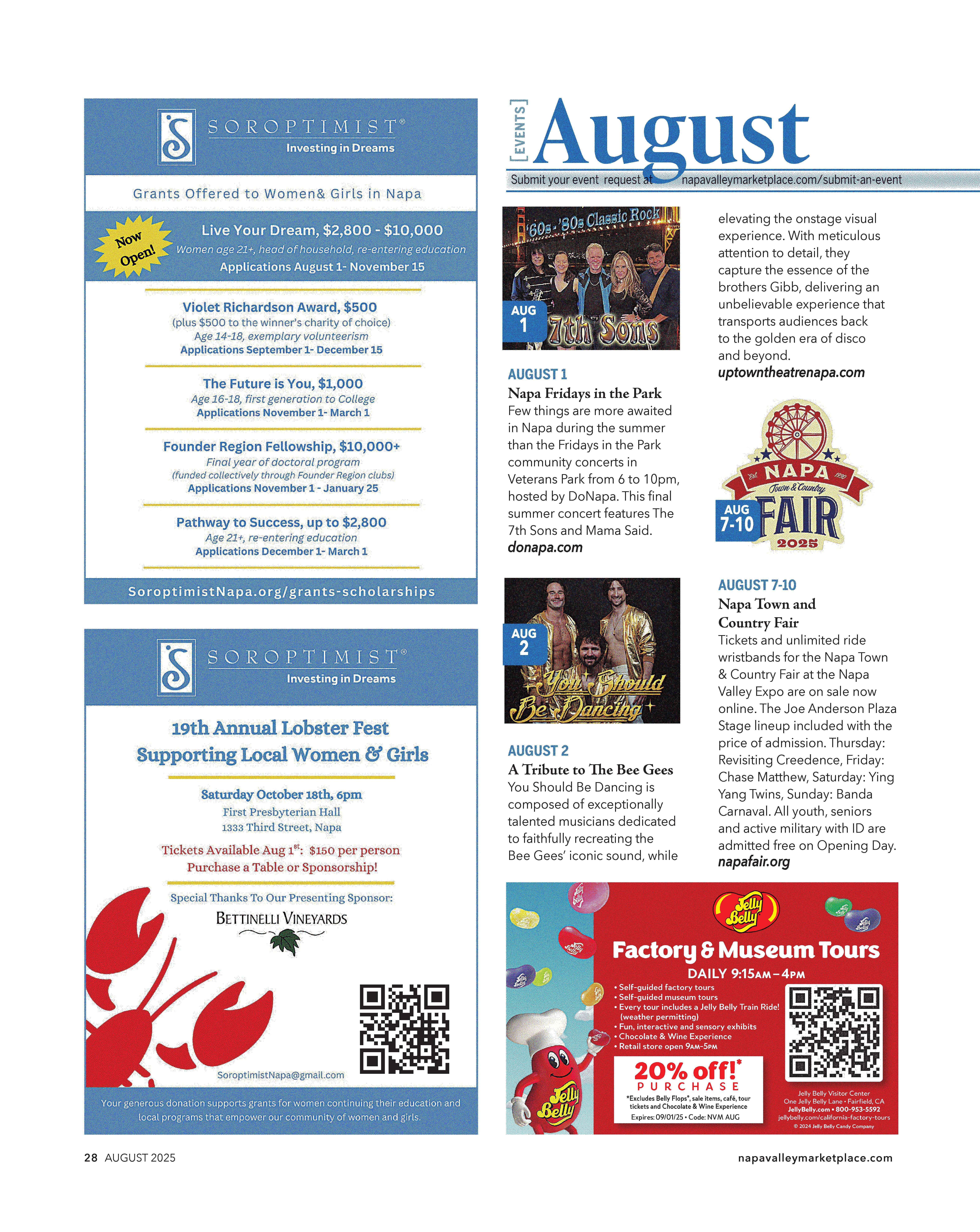 This year’s Show ’n Shine is Friday, August 15 from 5 PM to 8:30 PM, in Parking lot X, at the corner of Pearl and Yajome (where the Farmers Market is held). Admission to view the cars is free. Many Napans take advantage of the cooler evening weather and relaxed atmosphere to bring their families to check out the cars. Grab something to eat and drink while you are enjoying the cars, or make an evening of it and have dinner before or after. Either way, you’ve got a great Friday night.