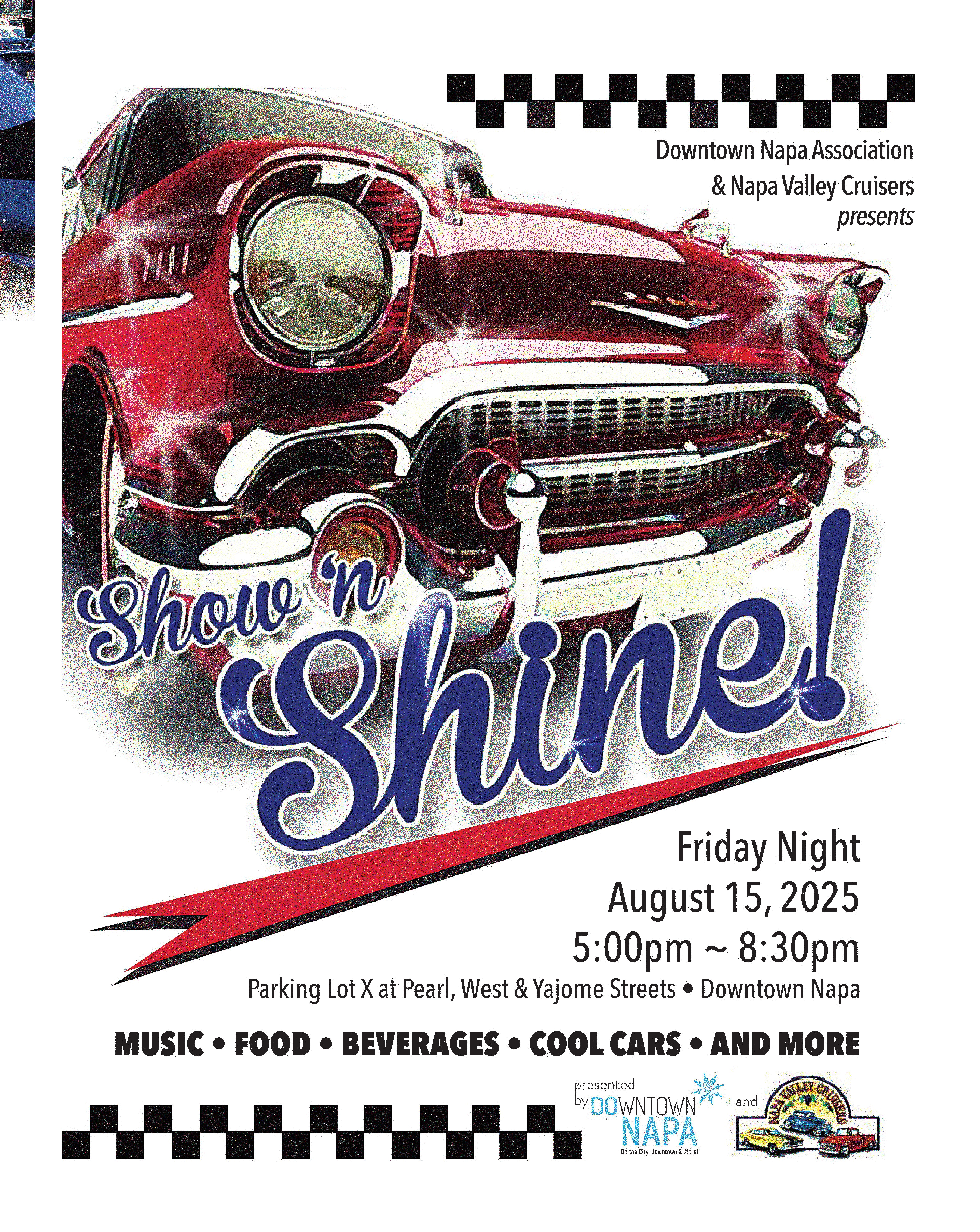 Show n’ Shine and other DNA events are possible thanks to their sponsors: Do Napa, Napa Valley Marketplace Magazine, all Downtown Napa property owners through their Property and Business Improvement District (PBID), and Napa lodging establishments through the Tourist Information District (TID).
