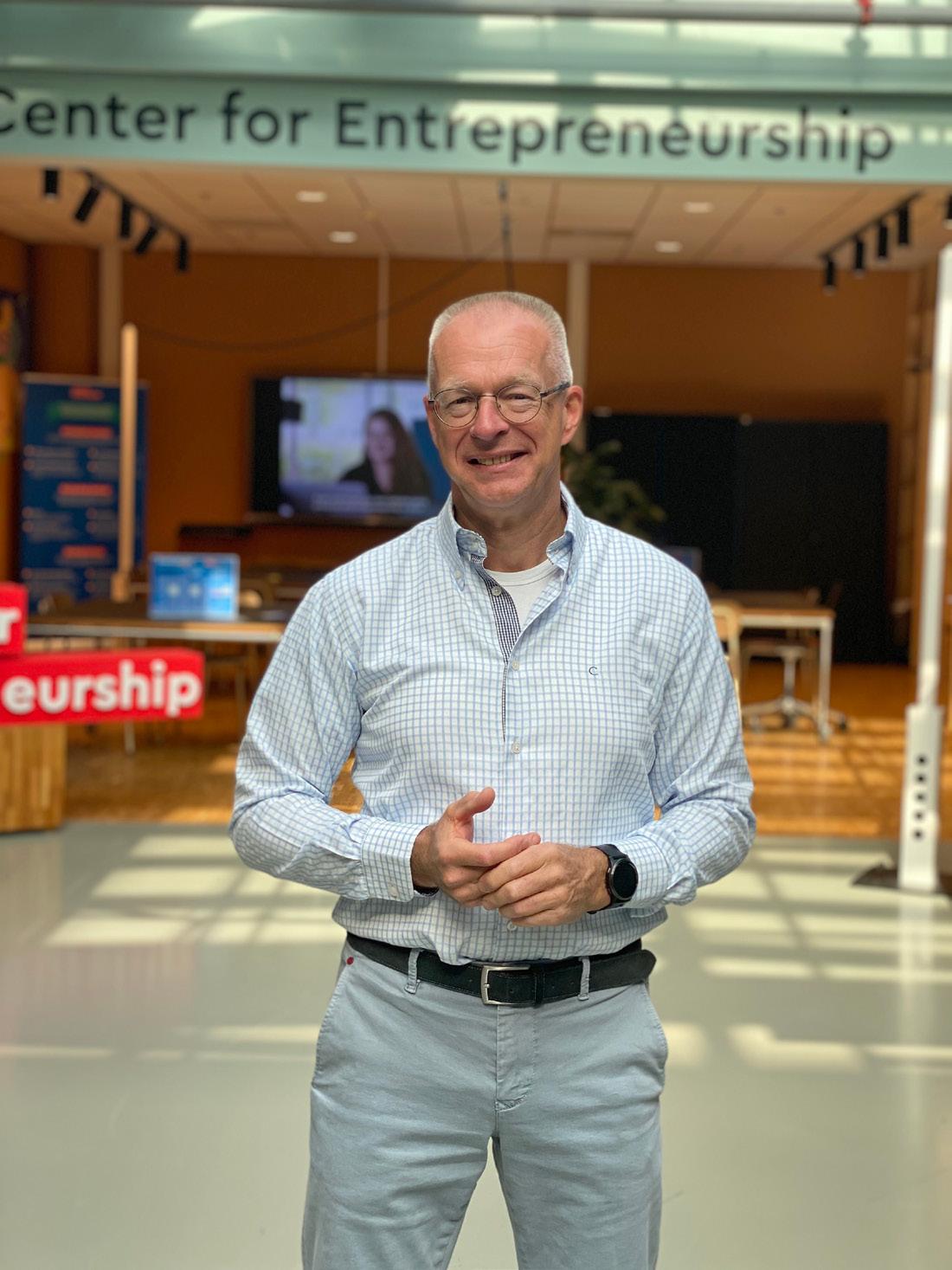 Hij werkt met een team van twaalf jonge mensen en ziet zichzelf als een ‘indirecte influencer’ die vanuit de achterhoede bijdraagt aan de dynamiek van het Center for Entrepreneurship (CfE). ‘Alles draait hier om talent en drijfveren de ruimte geven, ook in mijn eigen team’, zegt Hans. ‘Bovendien spreken jonge mensen de taal van studenten. Zij gaan makkelijker met elkaar in gesprek en dat maakt ons centrum laagdrempelig. Je hoeft geen businessplan te hebben om hier binnen te stappen, zelfs nog geen concreet idee. Wij zijn er voor alle studenten die zich willen oriënteren op zelfstandigheid of ondernemerschap, als alternatieve keuze voor werken in loondienst.’