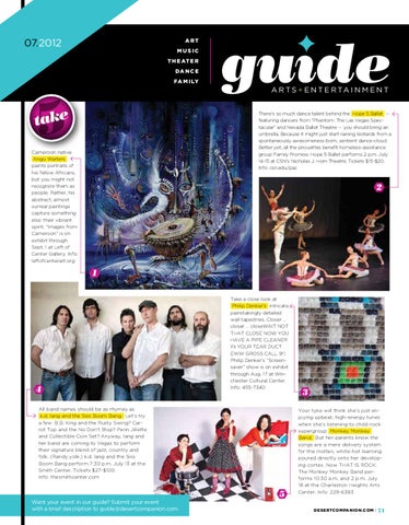 take Cameroon native Angu Walters paints portraits of his fellow Africans, but you might not recognize them as people. Rather, his abstract, almost surreal paintings capture something else: their vibrant spirit. “Images from Cameroon” is on exhibit through Sept. 1 at Left of Center Gallery. Info: leftofcenterart.org