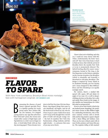 Flavor to spare With New York confidence, Brooklyn Bowl mixes nostalgic fare with homegrown originals B y D e bb i e L e e