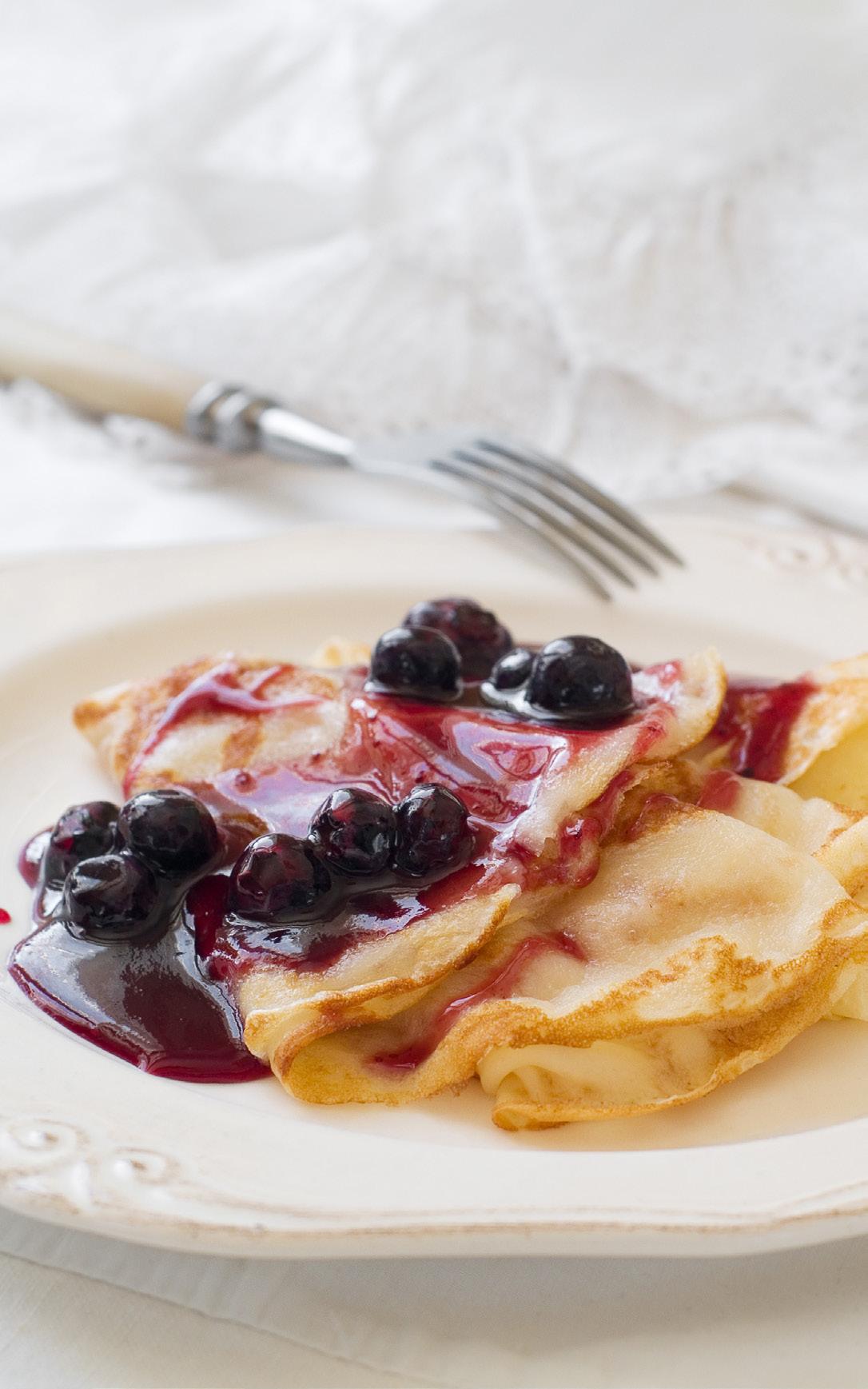 Signature crepe with sweet blueberry sauce and whole berries