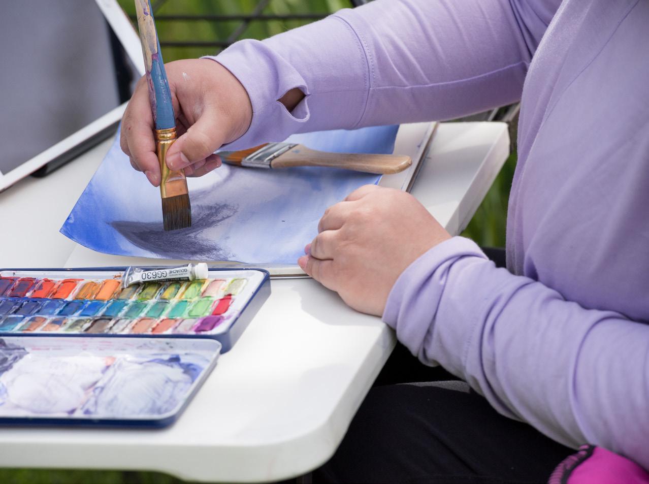 To have a smoother painting experience, choosing and mixing colors beforehand is key. Especially for watercolors, the best time to add more colors and blend is when the paper is wet. The paint can be reactivated in case it dries before applying more. When this happens, it is important to cover the whole piece of paper with more water. When it is glossy but not pooling in corners, it is the right amount.