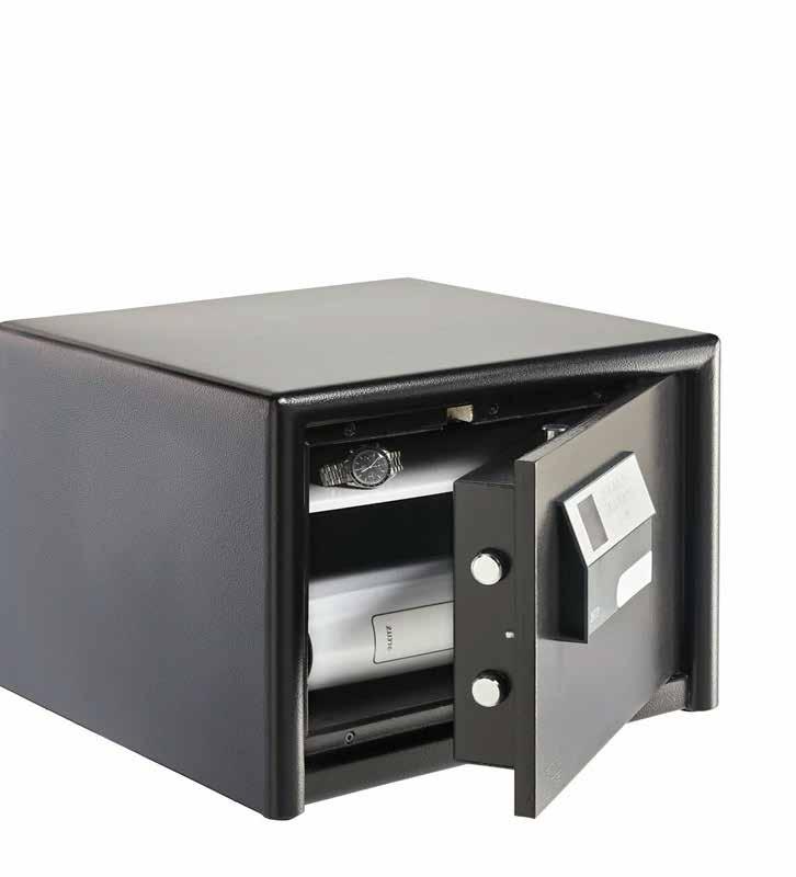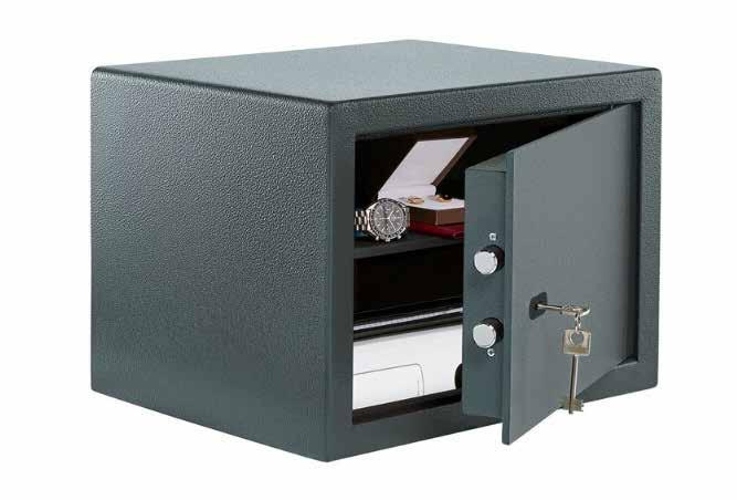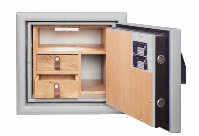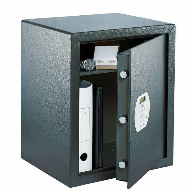 The safe can be fixed to the wall, floor or a piece of furniture. double-walled body, the side locking with 25 mm thick round bolts and a sliding boltm, as well as internal hindes. Fire resistance LFS 30P according to DIN 15659). This means that in case of fire, papers are protected inside for at least 30 minutes.
