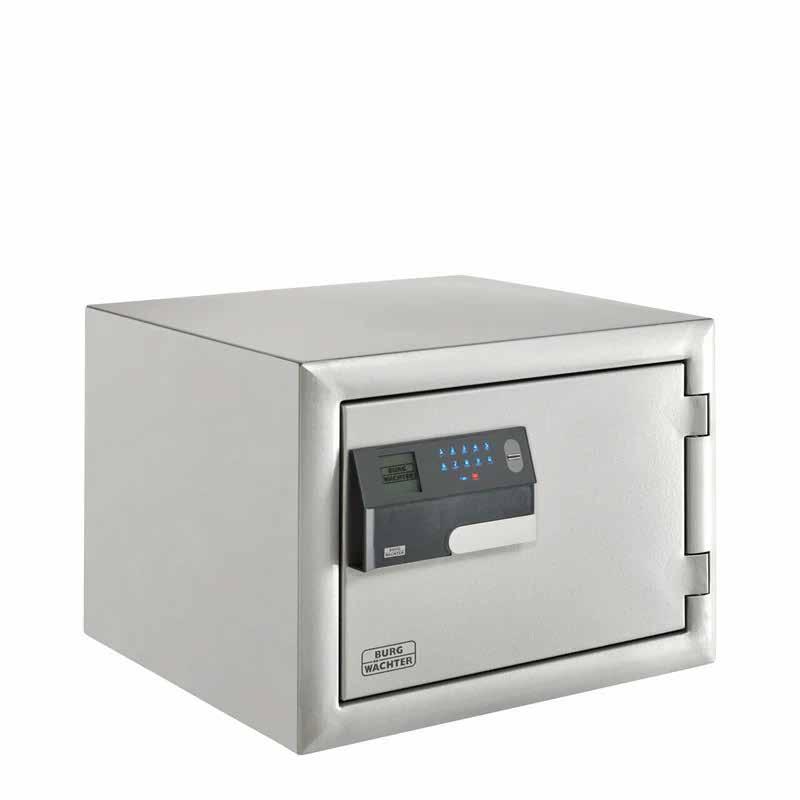The safes of the Diplomat series from BURG-WÄCHTER provide double protection. This makes them the ideal place for your valuables! Because the Diplomat valuables safe with resistance grade I is type-tested, monitored by the ECB-S/VdS and burglary protection certified according to EN 1143-1. Your documents are protected from fire and heat in the Diplomat for at least one hour. This is exactly what the certified fire protection according to EN 15659 guarantees. For this purpose, our developers have provided the wall with a reinforced special fire insulation. Furthermore, a special thermal insulation is installed so that the temperature inside only rises slowly in the event of a fire.