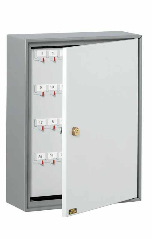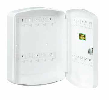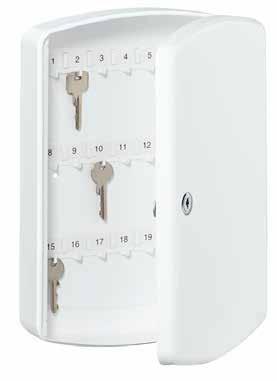 To prevent unauthorised persons from opening the key box and removing keys, the KB key box has a lockable cylinder lock. Each model is supplied with two keys and the appropriate mounting material. The KB key cabinets have a rounded shape. This means they fit unobtrusively into companies, clubs or your home environment.