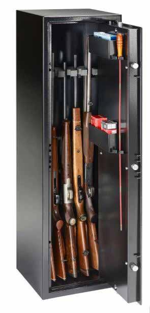The safe The gun cabinet Ranger N7 (designed for 7 long guns) has a resistance grade 0. You can store an unlimited amount of long guns and up to 5 short weapons, ammunitions included, according to the §36 of the current German weapon law. Two storage compartments in the door provide storage space, furthermore three cleaning rod holders are available in the Ranger N7.