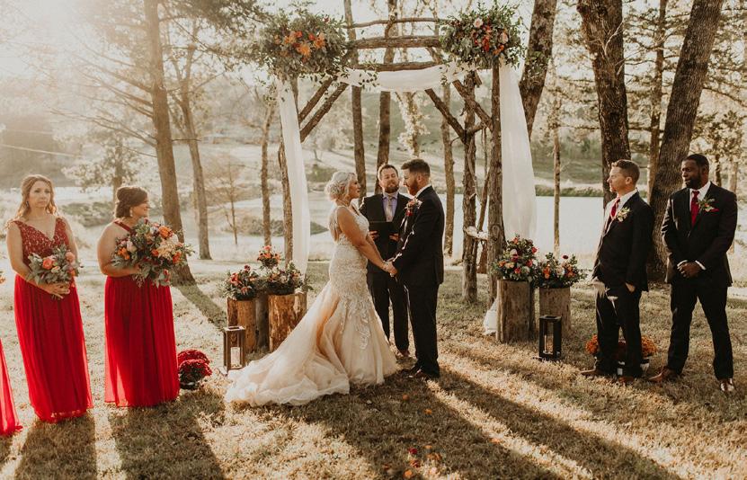 For Matt and Shannon, planning the wedding was so easy. They have a tendency to be on the same wavelength and neither are extravagant or overthe-top people. They both wanted a wedding that was pretty, yet low-key and with no stress. With families that don’t live locally, the important part was that they wanted to enjoy the day with each other, family, and friends.
