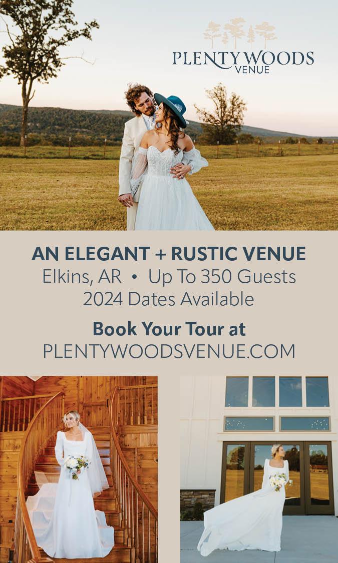 Unlike traditional bridal shows held in large convention centers, The Wedding Ideas Expo offers a unique setting at the enchanting Plentywoods Venue. Escape the noise and crowds as you explore this picturesque location, imagining your wedding surrounded by its natural beauty. Experience the venue in its element, filled with fellow couples and industry professionals, and gain insight into how your wedding could unfold in this intimate setting. Don't miss out on this extraordinary opportunity to elevate your wedding planning experience. Join us at The Wedding Ideas Expo and take the first step towards creating the wedding of your dreams! For more information, call 479-935-8133.