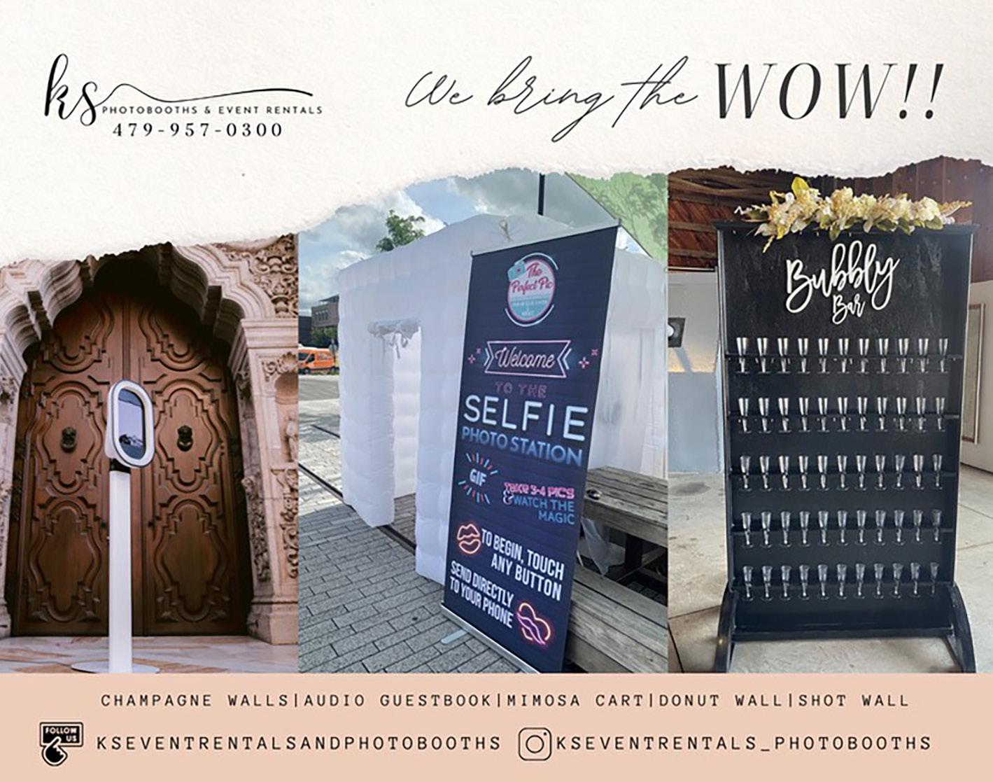 A notable aspect of KS Photobooths and Event Rentals is the creative touch brought by Kristin’s husband, who personally crafts all of the rental items such as the donut and champagne walls. This personal touch extends to their photobooth services, where they offer fully customized templates and overlays, complete with easyto-use, tap-to-start screens that