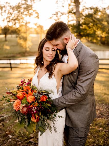 landscapes, provided the perfect venue for their fall-themed wedding, featuring natural tones and greenery reminiscent of their Northern California roots.
