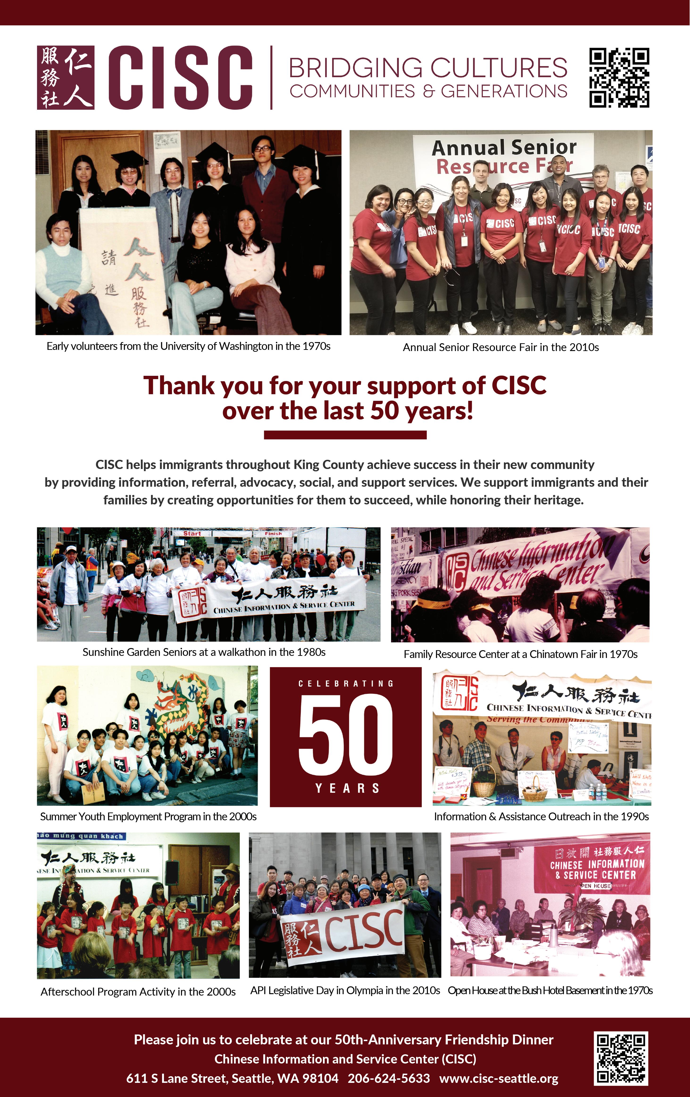 The Westin Bellevue, 600 Bellevue Way NE, Bellevue 5:30 p.m. cisc-seattle.ejoinme. org/50thGala