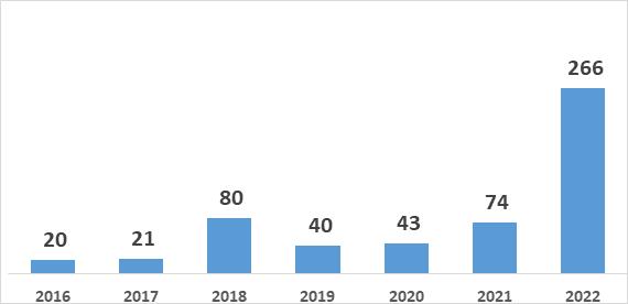 *NOTE: The 2022-23 value was calculated in year and will continue to change throughout the remainder of the academic year. It is anticipated that this number will double by year end (June 2023).
