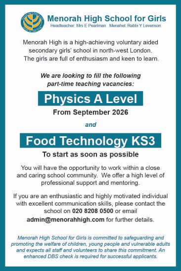 Applicants must be fully cognisant of, and respectful towards, Jewish religious values and community life.