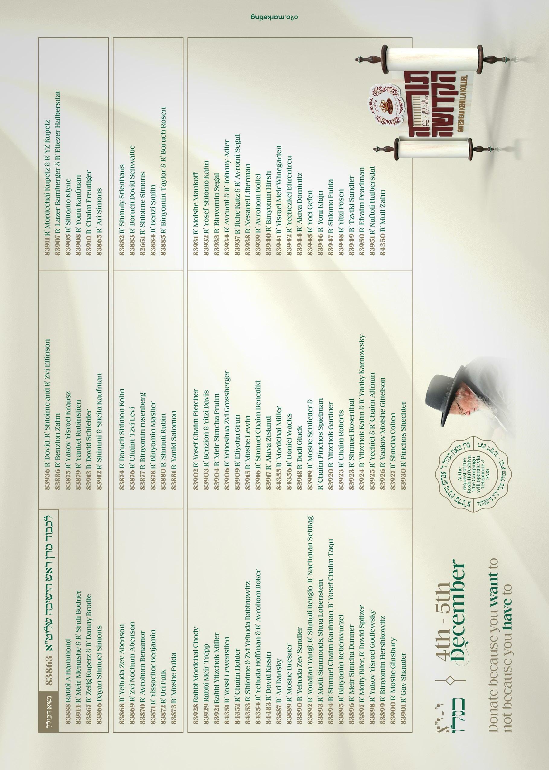 Hachinuch: Rabbi MZ Rapoport א"טילש, Dayan S Simons א"טילש Honorary Life President: Mr E Perl MBE