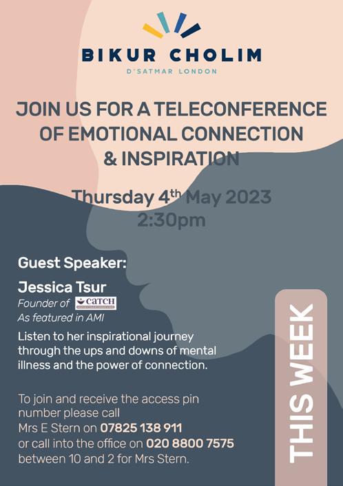 victims of abuse and educates the community about staying safe. Endorsed by leading UK Rabbonim. ABUSE HURTS …and goes on hurting. It may have happened years ago or more recently, but we understand the enduring pain caused by abuse. Call the Shema Koli Helpline and speak to one of our professionally-trained operators who will help you move forward. Call 020 3670 1818 / Email info@shemakolihelpline.org Helpline: Mon 3.30pm – 5.30pm • Tues 11.30am – 1.30pm Wed 7.30pm – 9.30pm • Thurs 11.30am – 1.30pm 8 North west CIrcular • 30th APRIL 2023