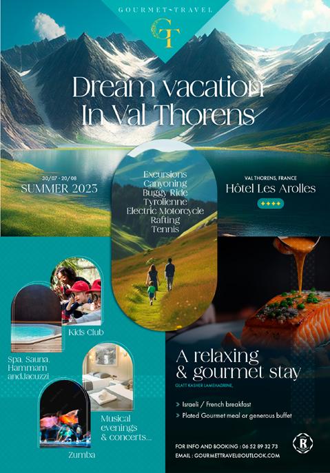 YOU R T ERRACE ON T H E I T A LIAN DOLOMITES! SYNAGOGUE & MIKVE MEHADRIN SWIMMING POOL & SPA BARBEQUE ON TERRACE BIKING, ICE SKATING, HORSE RIDING SCENIC WALKS & CLIMBING SUMMER 2023 f rom S h avuoth Streda de Costa 75, 38032 Alba di Canazei ( TN) ITALY Tel +39 0462 60.24.60 Fax +39 0462 60.00.61 info@mykosherhotel.it - mykosherhotel@gmail.com www.mykosherhotel.it UNDER THE SUPERVISION OF RAV RABINOWITZ SHLITA ADMUR MI -BIALE