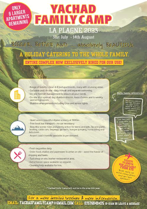 • Stage included • Air conditioning • Outside plaza area • Flooded with natural light • Located in the heart of Edgware • Set up to meet any requirements • Mobile giant touch smart screen TV • Seat 230 guests / 150 with dance floor • All amenities included within the hire rate • Close to all major public transport & road routes Looking for an affordable hall? Your versatile venue for Engagements • Sheva Brochos Bar/Bat Mitzvas • Charities Corporate Events Conferences Lectures 261 Hale Lane, Edgware, HA8 8NX Beit Shvidler events@ Graphics: rivkyhalbe@gmail.com To reserve your event contact Jana on events@beitshvidler.org.uk | 07966-979-951 12 North west CIrcular • 30th APRIL 2023