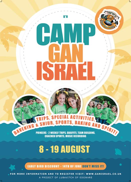 Your paragraph text 31 July - 11 August 2023 YEAR OF HAKHEL For more information visit www.ganisrael.co.uk Camp Gan Israel office 0208 905 4141 PIONEERS - 2 WEEKLY TRIPS, TEAM BUILDING ACTIVITIES, COACHED SPORTS, GRAFFITI PAINTING AND MORE!