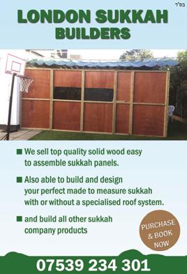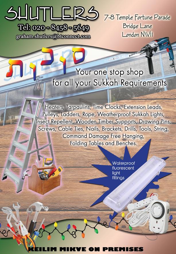 Easy To Assemble Fits all Free standing Sukkahs New Rapid Roof Hard Wall Sukkah with New Rapid Roof FORMER B&M BARGAINS Bevendon Square Broughton www.sukkahmart.co.uk TEL: 020 3011 3117 FELSENSTEIN HALL 173 Golders Green Rd ADEN HALL 127 Clapton Common Leeds Menachem Gilbert 07799886620 Prestwich Hillel 07972462953 or Yossi 07966019343 17 Woodlands Crescent Gateshead Shloimi Mannes 07929603159 38 Hilda Street NE8 1YB Salford - Sholom Cohen 07960163072 / 01617950098 / 07549887957 - Beis Menachem Hall, Cnr Park Lane and Upper Park Road, M7 4JD Kosher City 81-83 Windsor Road 0161 740 3428 M25 0DB Lower Broughton רפוק םיייח השמ 07400240400