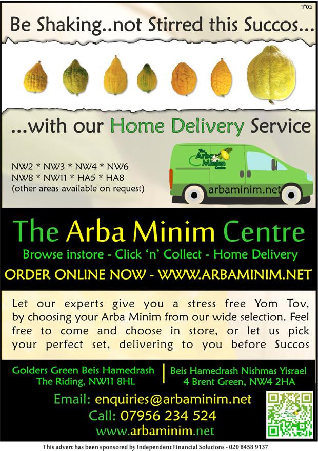ADEN HALL 127 Clapton Common www.sukkahmart.co.uk TEL: 020 3011 3117 HUGE SELECTION OF FINEST QUALITY ARBA MINIM ד ” סב FELSENSTEIN HALL 173 Golders Green Rd